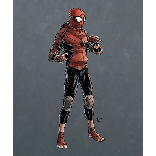 O desenho acima é uma arte de fã criada por Pietro Scola Di Mambro e que causou certa confusão recentemente, confundida com um material oficial. Porém, fontes dizem que o traje de Peter Parker será muito semelhante, especialmente pelas cores preta e vermelha e pelos protuberantes óculos.