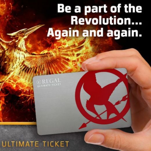 Pensando nisso, a Regal Entertainment Group, maior rede de cinema dos Estados Unidos, criou algo especial para os fãs da saga: um ingresso personalizado e colecionável que permite que o cliente possa ver Jogos Vorazes: A Esperança - O Final todos os dias! Essa é para aqueles que querem conhecer Panem como a palma da mão...