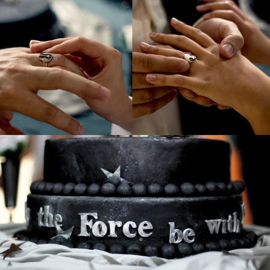 Fãs de Star Wars, aproveitando a estreia de O Despertar da Força, já pensaram em como seria casar no estilo de Guerra nas Estrelas? Andar até o altar ao som da marcha imperial, ter docinhos decorados com Mestre Yoda, bolo de Estrela da Morte, vestido de Princesa Leia? Agora você pode!