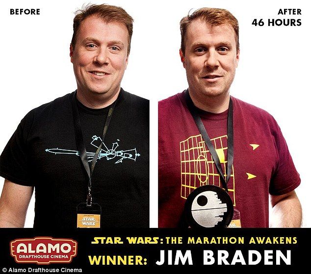 Jim Braden, um fã americano de 40 anos de idade, participou de um concurso promovido pela rede de cinemas estadunidense Alamo Drafthouse e ganhou o título de "Maior fã de Star Wars da galáxia". Ele assistiu os seis primeiros filmes da saga (Uma Nova Esperança, O Império Contra-Ataca, O Retorno de Jedi, A Ameaça Fantasma, Ataque dos Clones e A Vingança dos Sith) e em seguida viu, por nove vezes, Star Wars - O Despertar da Força em uma jornada que durou 46 horas initerruptas.