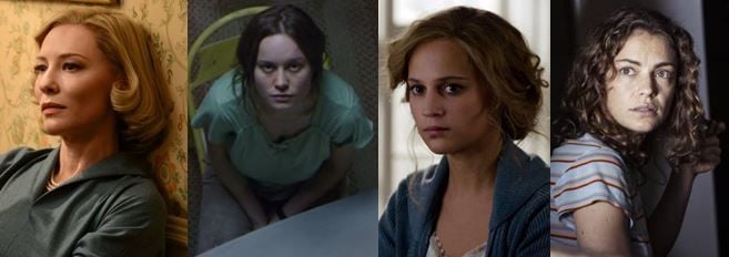 Rooney Mara (Carol) - Mara mostra no olhar a transformação de Therese Belivet de jovem vendedora introspectiva sem grandes ambições a fotógrafa elegante, segura de si e dona de decisões firmes. Sua opção pela sutileza casa perfeitamente com a atuação exuberante de Blanchett e não existe coadjuvante no dueto de amor velado comandado por Todd Haynes.