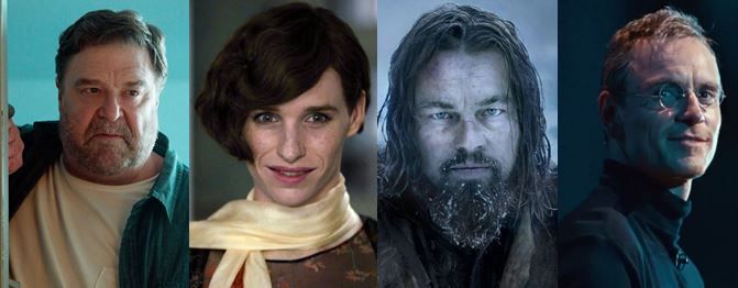 Leonardo DiCaprio (O Regresso) - Escapou do urso, se arrastou sozinho no frio em terreno acidentado, dormiu na carcaça, não descansou sem vingança, suportou tudo em silêncio, passou fome, passou sede, finalmente ganhou o Oscar.