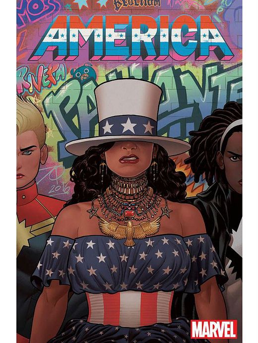 As histórias de "America" serão escritas pela autora de livros jovem adultos Gabby Rivera e o primeiro volume será lançado nos Estados Unidos em março. Nos quadrinhos, veremos a heroína defender a Terra de hordas alienígenas enquanto viaja entre diferentes dimensões para assistir às aulas e ainda ter tempo para uma vida pessoal. A capa de Joe Quinones poderá ser vista na edição de abril.