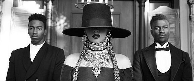 America traz um figurino similar ao que a cantora usa no álbum "Lemonade". Mas, ao invés do traje todo preto, as roupas são decoradas com as estrelas e listras da bandeira dos Estados Unidos, e até mesmo o chapéu branco e vermelho faz referência ao símbolo nacional americano "Tio Sam".