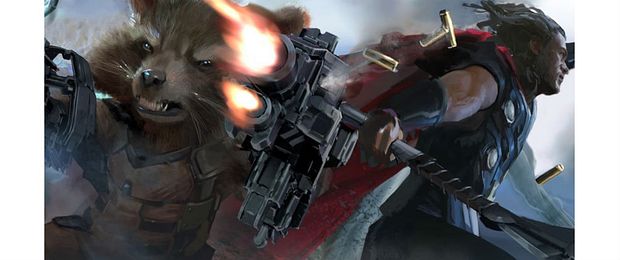 O deus do Trovão vai voltar a dar as caras em Thor: Ragnarok e Vingadores: Guerra Infinita. O primeiro vídeo da grande reunião de heróis mostrou que de fato os Vingadores finalmente vão se unir aos Guardiões da Galáxia. Além de trazer Robert Downey Jr. (Homem de Ferro), Chris Pratt (Senhor das Estrelas) e Tom Holland (Homem-Aranha) lado a lado, uma arte conceitual mostrou Thor lutando junto com Rocket Racoon (voz de Bradley Cooper).