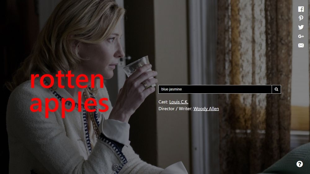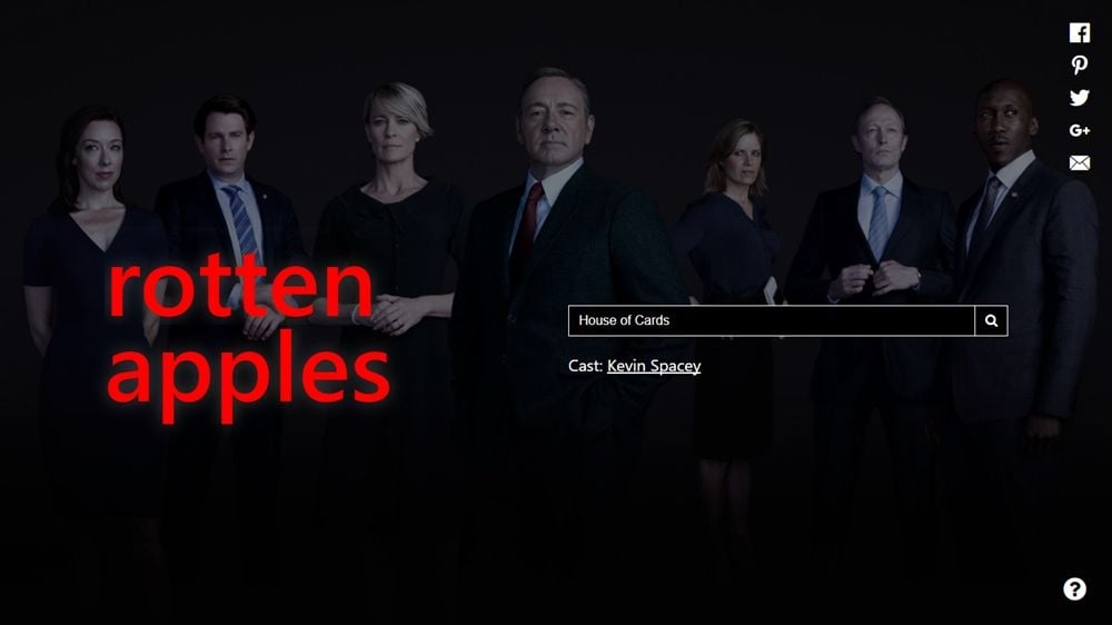 Pensando nisso, um novo website foi criado para que o usuário identifique nos filmes ou séries se há abusadores envolvidos no elenco ou na produção — e quem são. O Rotten Apples ('maçãs podres') recebe o título em referência ao agregador de críticas Rotten Tomatoes. Basta acessá-lo e digitar o nome da obra no campo de busca. Clique aqui.