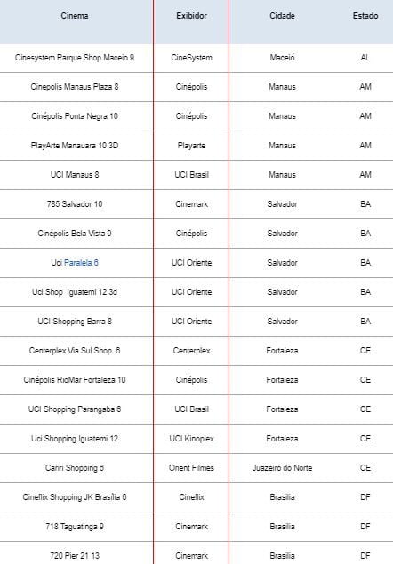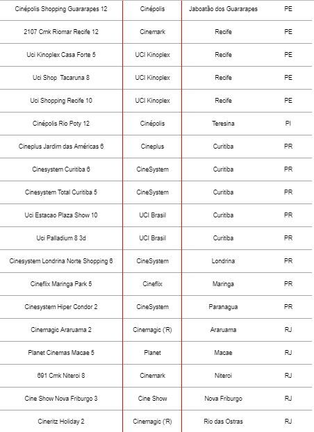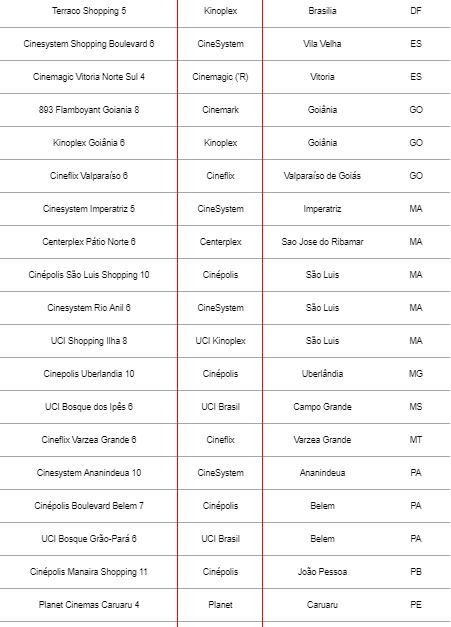 Confira a lista de cinemas participantes abaixo. Para comprar ingressos, clique aqui!