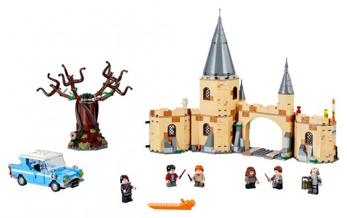 Até o Salgueiro Lutador, acompanhado do Ford Anglia voador de Arthur Weasley, tem sua versão LEGO. Baseado na cena de A Câmara Secreta, o conjunto traz Harry e Rony com roupas comuns, Hermione e Simas Finnigan com uniforme da escola, além de Argo Filch e Severo Snape, e uma pequena coruja Edwiges. O conjunto, que custará em torno de US$69.99 (cerca de R$255), vem acompanhado com um pedaço do Castelo de Hogwarts.