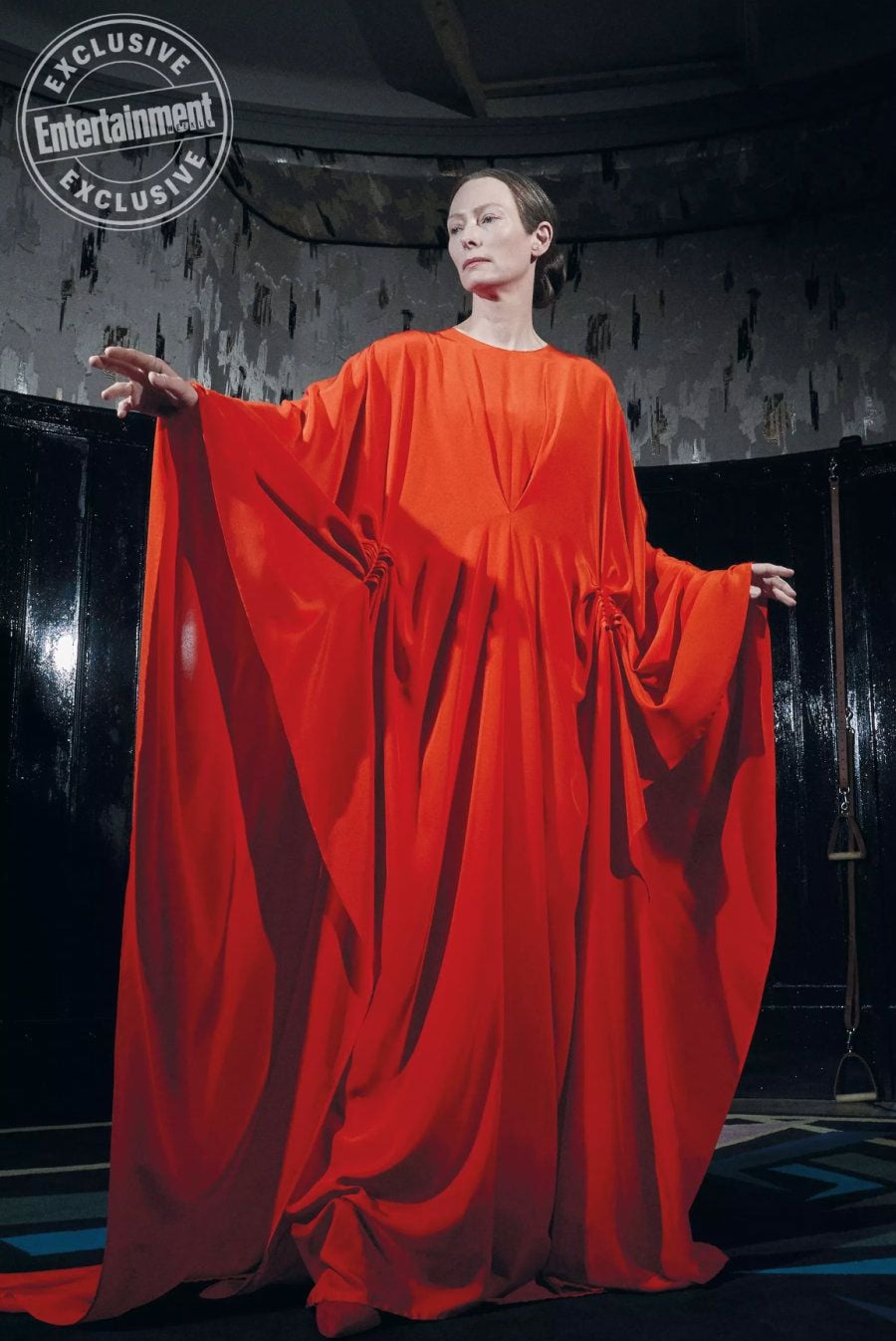 No longa, Swinton interpreta Madame Blanc, a rígida instrutora de dança de uma prestigiada escola alemã. Buscando aprimorar seu talento, a jovem Susie Bannion (Dakota Johnson) viaja para Berlim, onde encontra o caminho perfeito para se tornar a melhor. No entanto, ao conhecer Sara (Mia Goth), Susie entra em contato com os obscuros segredos locais e enfrentará eventos sobrenaturais aterrorizantes e irreversíveis envolvendo bruxas milenares.
