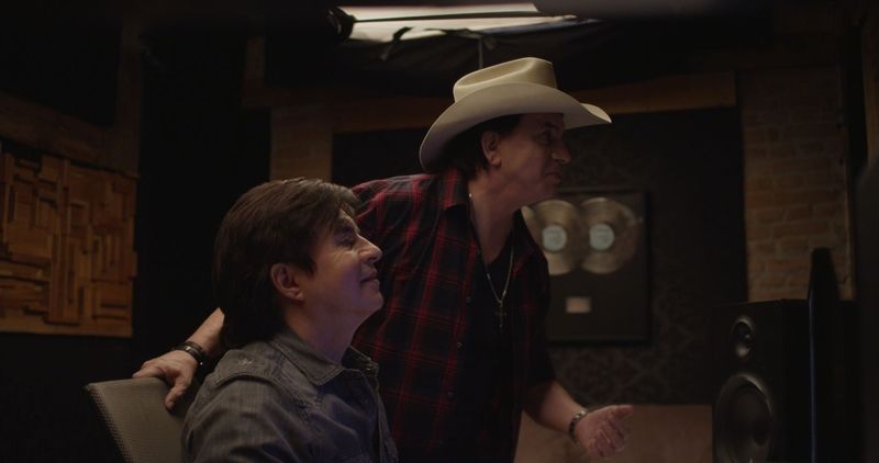 Além dos clássicos sertanejos, Sater contribuiu com três canções originais para a produção. Uma delas, "Meu Lugar", tem um impacto especialmente emocional na narrativa. "A música entrou em uma cena muito bruta que eu toco com o Jackson em um dos clímax do filme", conta o ator. A parceria com ator veterano, aliás, rendeu muitos elogios do elenco. "Ele é uma alma iluminada, uma pessoa incrível, teve uma troca sincera entre a gente, o tempo inteiro buscando o melhor. Quando a gente fazia nossas cenas saia faísca e o Gui ficava muito feliz. Foi uma energia muito curiosa, a nuca arrepiava, o corpo inteiro entrava em uma adrenalina muito curiosa, eram embates muito sérios", recorda Gabriel. Pereira descreve Jackson como alguém que tem uma "atmosfera muito forte" ao redor de si e diz que as falas do roteiro ganharam outra com o ator. "Quando ele lê um texto ele melhora suas palavras, não sei como isso é possível. Ele lê sua frase é como se fosse ouvir poesia."