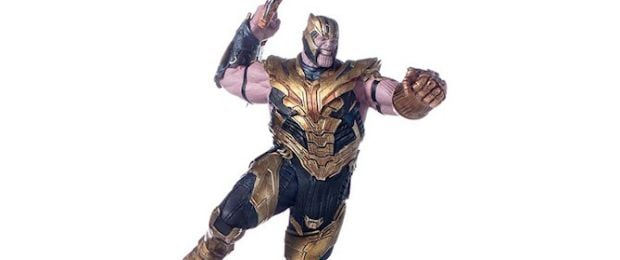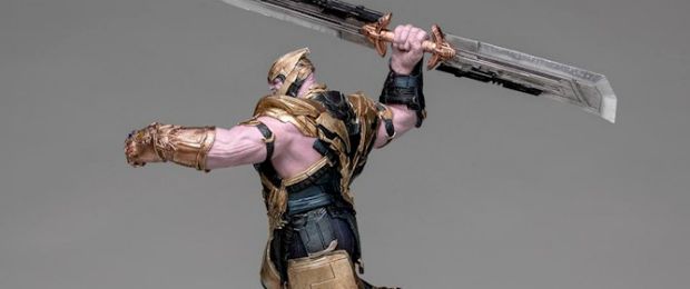 Novas imagens do seu colecionável da Iron Studios (que será vendido após o lançamento do filme) mostram que, além de uma Manopla do Infinito restaurada após os eventos de Guerra Infinita, o vilão interpretado por Josh Brolin usará um elmo e terá em mãos uma poderosa espada como arma.