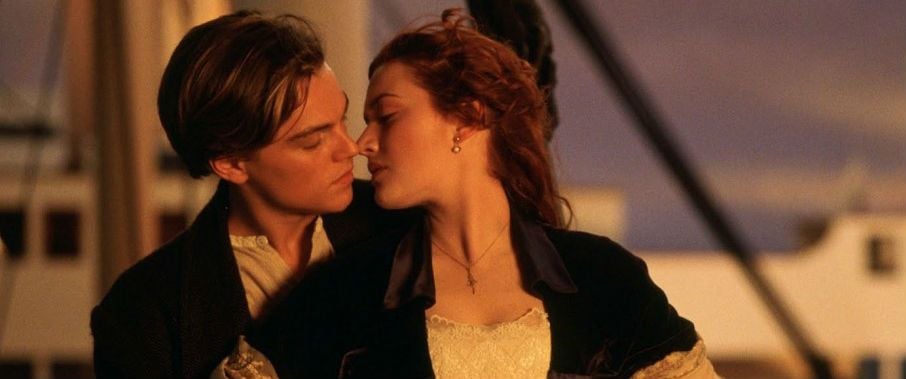 Jack (Leonardo DiCaprio) e Rose (Kate Winslet) são um dos casais mais românticos do cinema, assim como sua cena de beijo. Ao som de "My Heart Will Go On", de Céline Dion, os dois se encontram na proa do Titanic e se equilibram na frente do navio. Assim, protagonizam seu primeiro e icônico beijo, visto, revisto e reproduzido por muitos fãs ao redor do mundo.