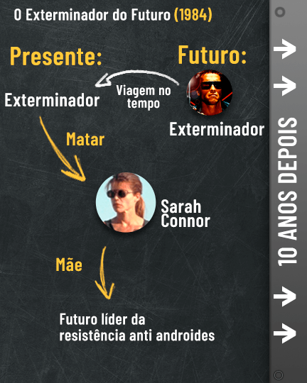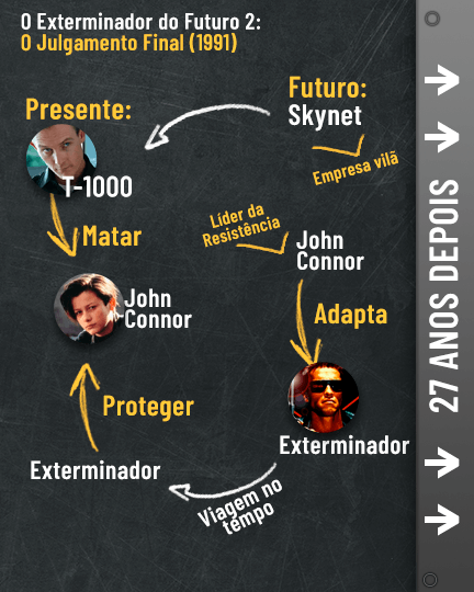 Mas onde tudo começou? Na realidade, a história se inicia no ano de 2029, quando os andróides tomaram conta da população humana e estão prestes dar o pontapé no extermínio de toda nossa raça, até que o destemido John Connor inicia uma revolução contra as máquinas e vira o jogo para nós. É justamente a partir daí que a Skynet envia o Exterminador para matar a mãe do rapaz, Sarah, antes mesmo dele nascer. Acompanhe a linha cronológica abaixo!