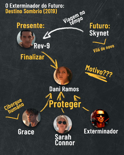 Agora, conforme o Exterminador está de volta na pele de Gabriel Luna em Destino Sombrio, Connor precisará ajudar a novata Dani Ramos (Natalia Reyes) em uma tarefa que ela já conhece muito bem: proteger um humano de uma máquina assassina. Para isso, a veterana na arte de enfrentar droids contará com a ajuda de Grace (Mackenzie Davis), que se descreve como uma espécie de humana com habilidades diferenciadas.