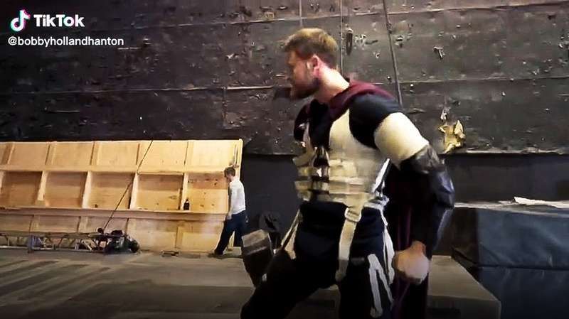 Em um vídeo do TikTok, agora excluído, o dublê de Hemsworth, Bobby Holland Hanton – que recentemente fez uma reclamação inusitada sobre o ator – pode ser visto praticando uma manobra voando pelo ar enquanto Thunderstruck da banda AC/DC toca ao fundo. O detalhe mais importante é que ele está empunhando o Mjolnir.