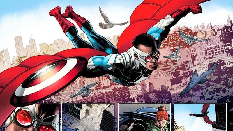 Antes de se tornar conhecido nos cinemas, Falcão surgiu pela primeira vez em 1969 nas revistas em quadrinhos. Com visão de alto alcance, sentidos aguçados e ligação telepática com a ave de rapina Asa Vermelha, o super-herói foi presenteado pelo Pantera Negra com asas e uniforme ultra equipado feito em Wakanda. Amigo do Capitão América, Falcão se tornou fundamental para prosseguir com o legado do herói quando este estava incapacitado.