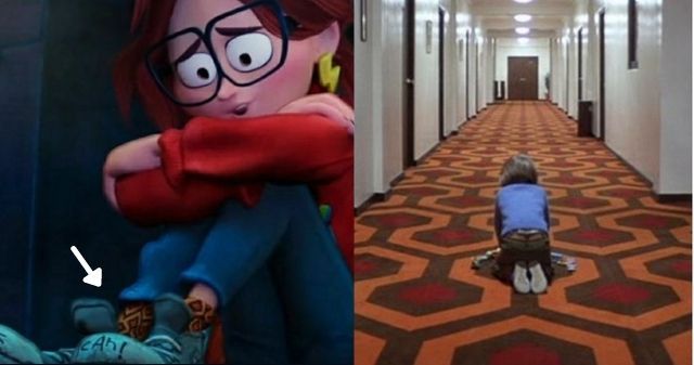 Uma referência bem legal que aparece em A Família Mitchell e a Revolta das Máquinas está presente nas meias de Katie, isso mesmo! Elas têm exatamente o mesmo padrão icônico do carpete do Hotel Overlook, o cenário aterrorizante do clássico do terror O Iluminado (1980), também de Stanley Kubrick, que é uma das melhores adaptações do mestre do terror Stephen King (apesar do autor não gostar nem um pouco).