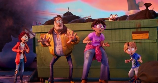 Além disso, vemos um pôster para o filme de ficção Roboslayers 4, que indica o futuro da família Mitchell como matadores de robôs.