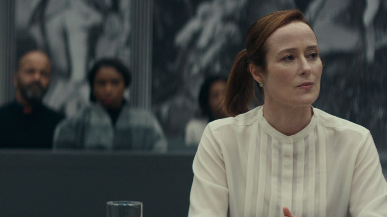 Jennifer Ehle, de Contágio, é a advogada Katherine O'Brien
