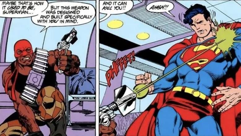 O Esquadrão Suicida também faz referência a outros personagens do Universo Estendido DC, como Superman (Henry Cavill). Conforme anunciado nos trailers, Sanguinário, o personagem de Idris Elba, está em Belle Reve por ter atirado em Superman com uma bala de kryptonita e colocado o Homem de Aço na UTI. É uma história tirada diretamente das páginas dos quadrinhos da DC, quando Lex Luthor usou Robert Dubois como seu meio para matar Superman. Ele usou agulhas de kryptonita para atirar em Superman, depois de atraí-lo ao matar mais de 25 civis inocentes. Superman também foi baleado com uma bala de kryptonita no filme animado da Lego Liga da Justiça: Ataque da Legião do Mal.