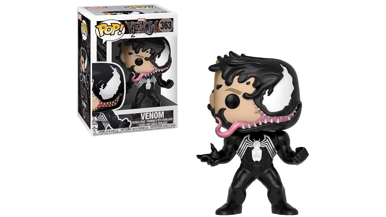 Venom é o ser resultante da simbiose entre uma criatura alienígena e o jornalista Eddie Brock, ex-repórter do jornal Clarim Diário. Sua característica marcante, além do uniforme negro, é a desproporcional e assustadora mandíbula, desenhada no traço de Todd MacFarlane. O Funko Pop! Marvel Venom/Eddie Brock mostra justamente o momento em que ocorre a simbiose entre a criatura e Eddie, criando Venom.