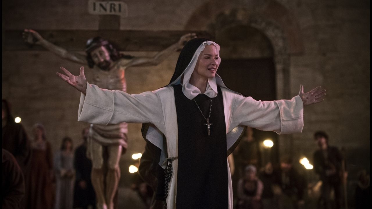 Benedetta é uma biografia dramática que se passa no século XVII e uma interpretação solta do livro Atos Imodestos, de Judith C. Brown. Benedetta Carlini (Virginie Efira) é uma freira italiana que faz parte de um convento na Toscana desde sua infância, quando foi dada por sua rica família ao convento. Desde então ela sofre de um distúrbio e tem perturbações e visões religiosas sobre a Virgem Maria, além de clamar que consegue se comunicar com ela, e visões eróticas com Jesus Cristo. Assistida por uma companheira, Carlini se verá ameaçada quando sua relação com sua rebelde ajudante se transformar em um conturbado romance amoroso. Ela foi considerada mística e venerada por sua comitiva religiosa por conta de sua fé, mas foi presa e condenada por ser sáfica.