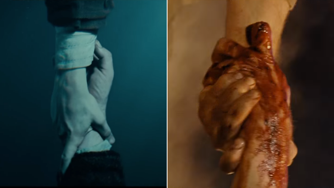 O Senhor dos Anéis - O Retorno do Rei é longo demais? Peter Jackson rebate críticas ao último filme da trilogiaA primeira, localizada no final de A Sociedade do Anel, mostra Sam se afogando no rio Anduin, até que, nas últimas, é resgatado por Frodo. O protagonista segura sua mão para trazê-lo de volta ao barco.