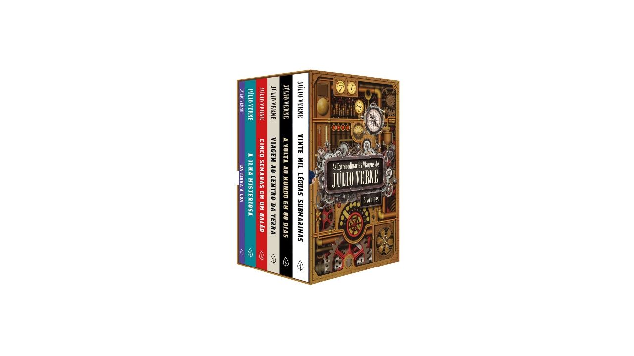 Embarque nas aventuras de Júlio Verne com seis livros da sua coletânea: Da Terra à Lua, A ilha misteriosa, Cinco semanas em um balão, Vinte Mil Léguas Submarinas, A Volta ao Mundo em 80 Dias e Viagem ao Centro da Terra. Encontre na Amazon por R$ 67,42.