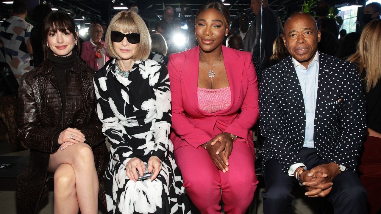 Não bastasse a semelhança do look, Hathaway sentou-se ao lado de Anna Wintour, editora-chefe da Vogue norte-americana, que inspirou a personagem de Meryl Streep, a Miranda Priestly. Ao lado das duas esteve também a tenista Serena Williams, toda vestida de rosa e trabalhada no visual Barbiecore, e o prefeito de Nova York, Eric Adams.