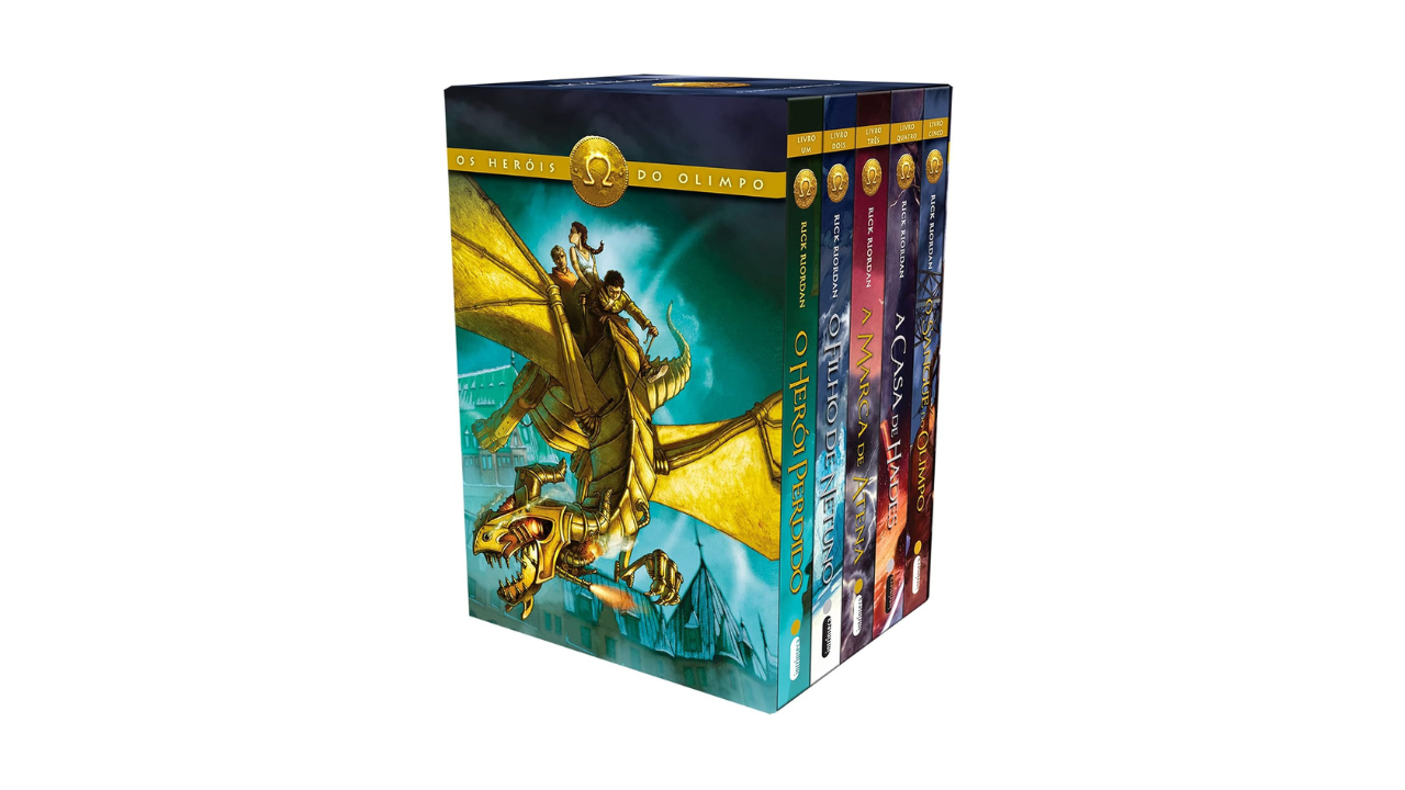 Em Os heróis do Olimpo, Rick Riordan retorna ao universo de Percy Jackson e os Olimpianos. Repletos de humor, aventura e mistério, os cinco livros que compõem esse box imperdível reúnem personagens queridos dos leitores, como Percy Jackson e Annabeth, e apresenta três novos semideuses: Jason, filho de Zeus, Pipper, filha de Afrodite e Leo, filho de Hefesto. Encontre na Amazon por R$ 202,90.