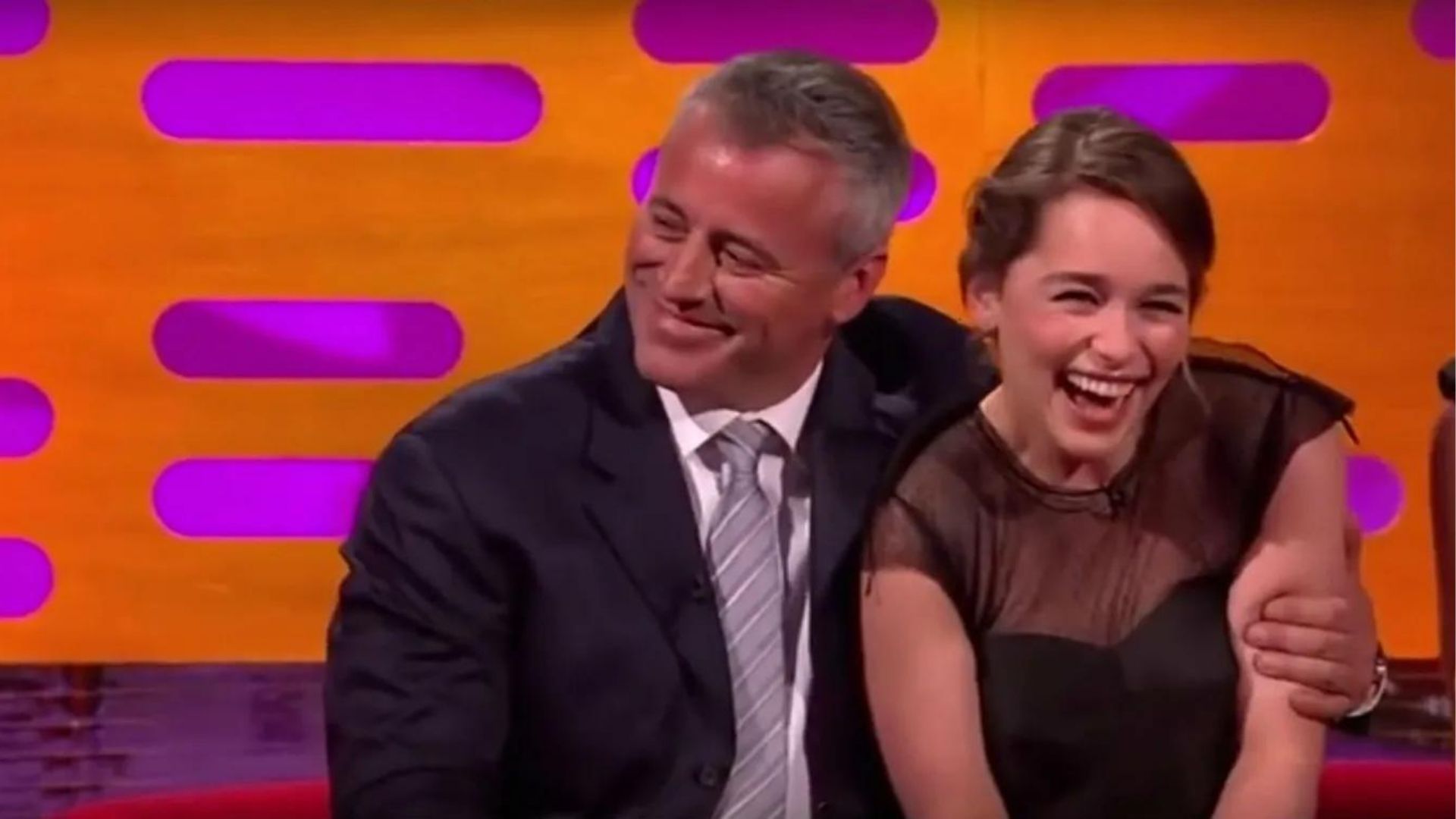 Durante o programa, LeBlanc disse que tentou acompanhar Game of Thrones, mas que não obteve sucesso: "Não consigo acompanhar, me sinto muito mal." Clarke não se ofendeu, pelo contrário, retrucou o comentário com uma pergunta que, com certeza, todos nós faríamos: "Você poderia me perguntar como estou?". Felizmente, LeBlanc não resistiu ao pedido da atriz e soltou o seu bordão mais famoso: "Bem, já que não estou por dentro do programa, how you doin'?", deixando Emília extremamente encantada — a final, quem não ficaria, não é?!