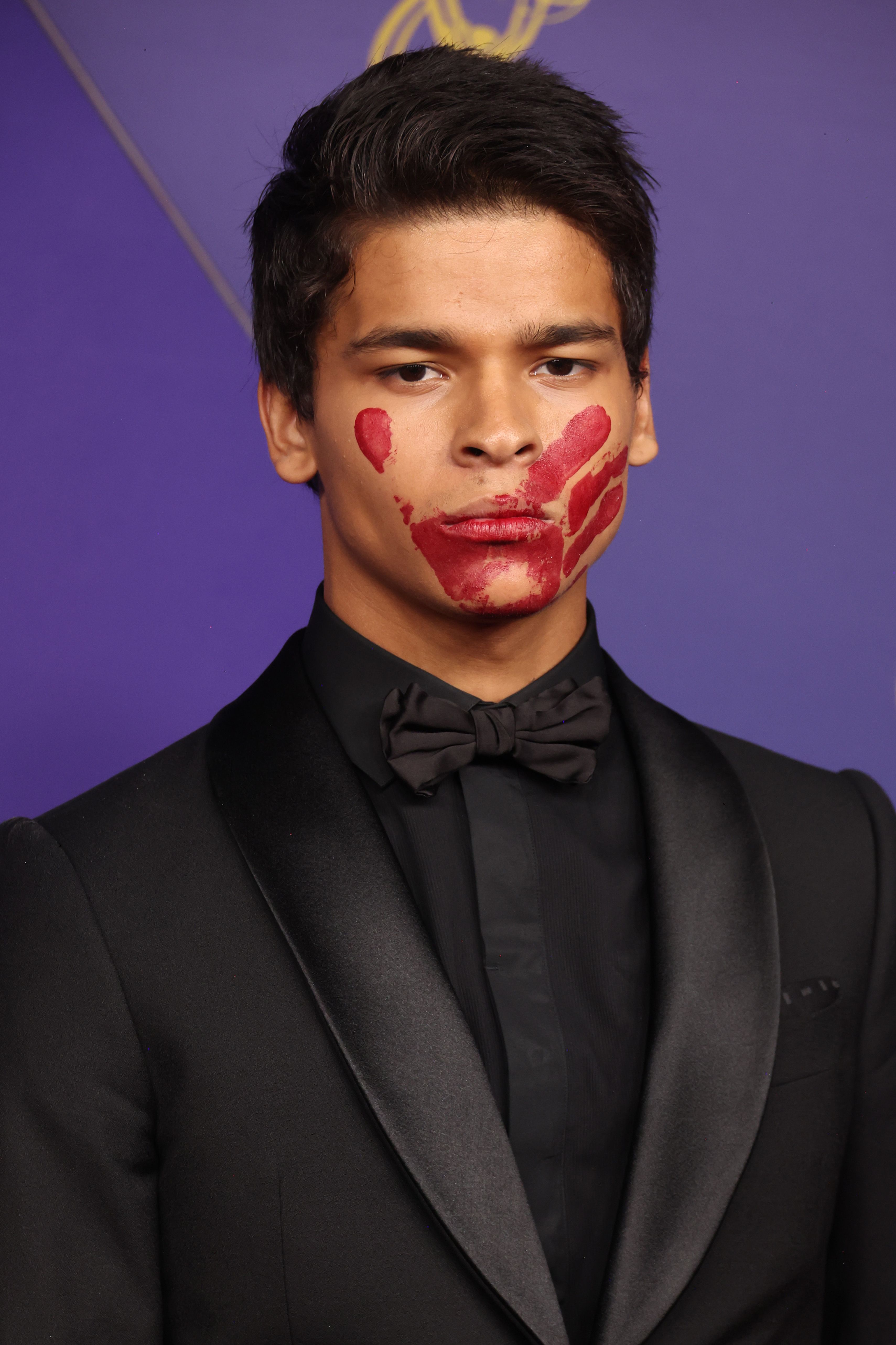O Emmy 2024 aconteceu neste domingo, 15 de setembro, reunindo as maiores estrelas da televisão. Dentre os vestidos fabulosos das celebridades, o ator D'Pharaoh Woon-A-Tai chamou a atenção no tapete vermelho aparecendo uma pintura vermelha no formato de mão em seu rosto, tapando sua boca.