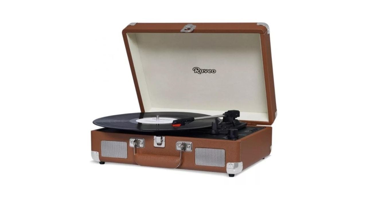 Em formato de mala, a vitrola da Raveo pode ser levada para diferentes lugares, servindo como uma forma de entretenimento em viagens, passeios e muito mais, tornando-o ainda mais prático e atemporal. Encontre no Mercado Livre por R$ 569,05.