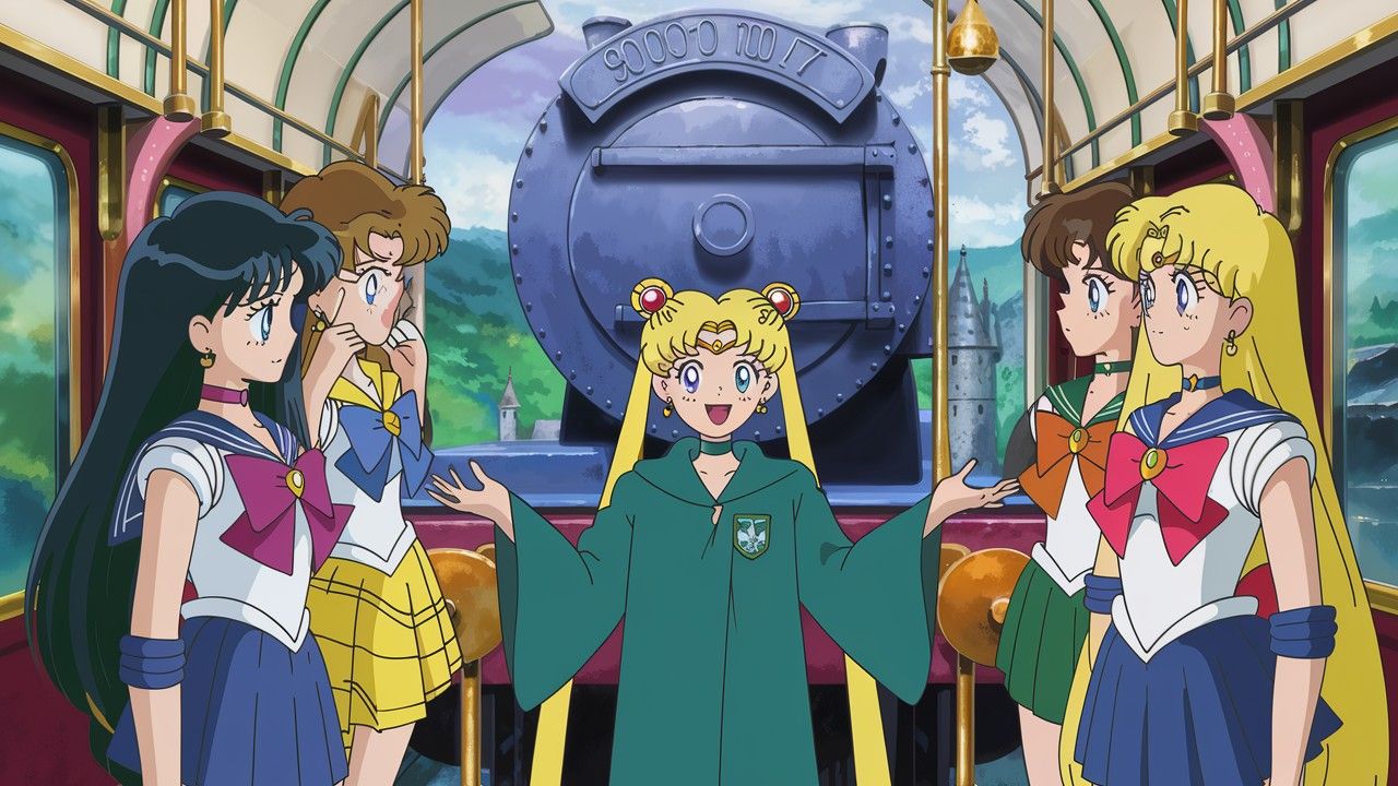 As Guardiãs Sailor teriam recebido sua carta de admissão para a Escola de Magia e Bruxaria de Hogwarts e, para chegar à lendária escola, precisariam pegar o trem na Plataforma 9 3/4. Uma aventura sem igual aguarda as poderosas personagens.
