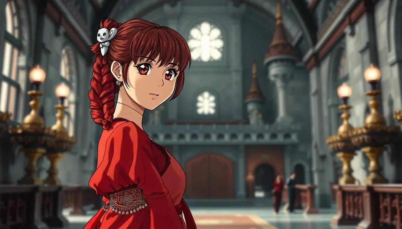 Dentro de seu castelo, Ranma passeia pelo salão principal, onde ela provavelmente realizará grandes festas e até mesmo alguns eventos de artes marciais dos quais também participaria.