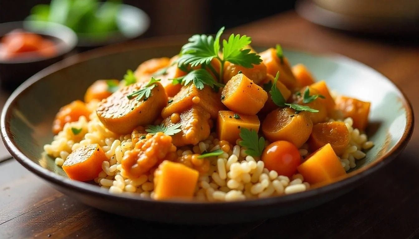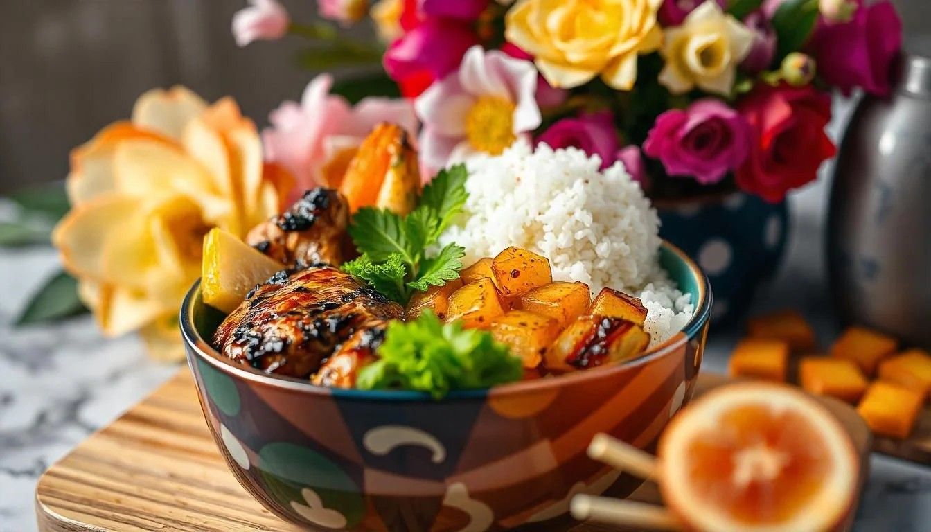 Uma tigela cheia de proteínas e carboidratos