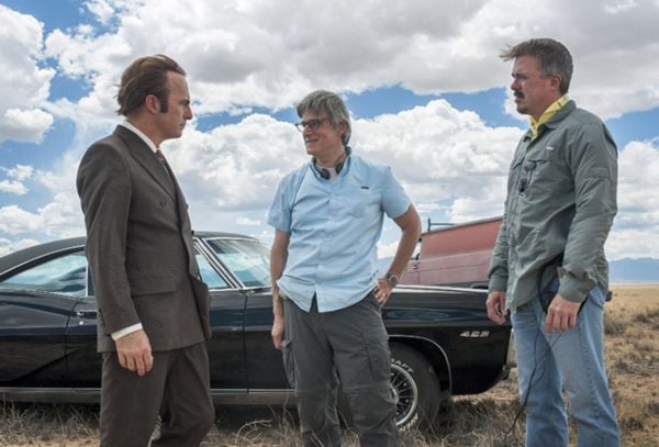 Uma das novidades é a primeira foto da produção, em Albuquerque, no Novo México. A foto mostra Odenkirk, o criador Vince Gilligan e Peter Gould, produtor da série que criou o personagem Saul.