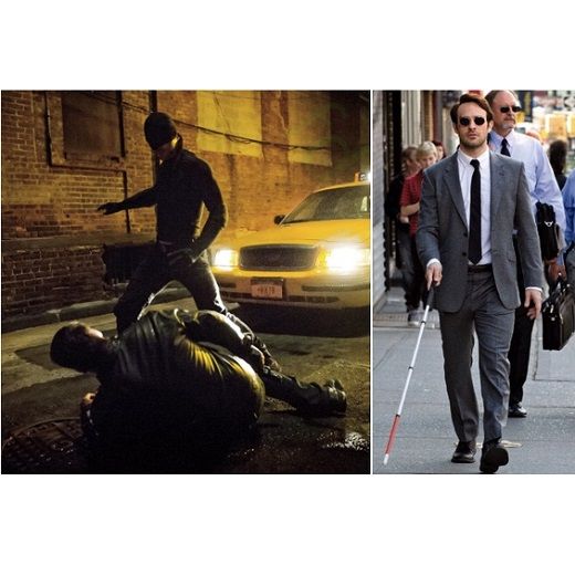 Daredevil, a primeira série do ambicioso plano da Netflix de criar um universo de super-heróis (menos populares, diga-se) em sua plataforma online, ganhou novas imagens. Nas fotos abaixo, via Entertainment Weekly, Charlie Cox (Boardwalk Empire) surge em cenas clássicas das HQ's, ora de terno e bengala, como Matt Murdock, ora combatendo crime em becos escuros, devidamente trajado como o herói Demolidor. Confira: