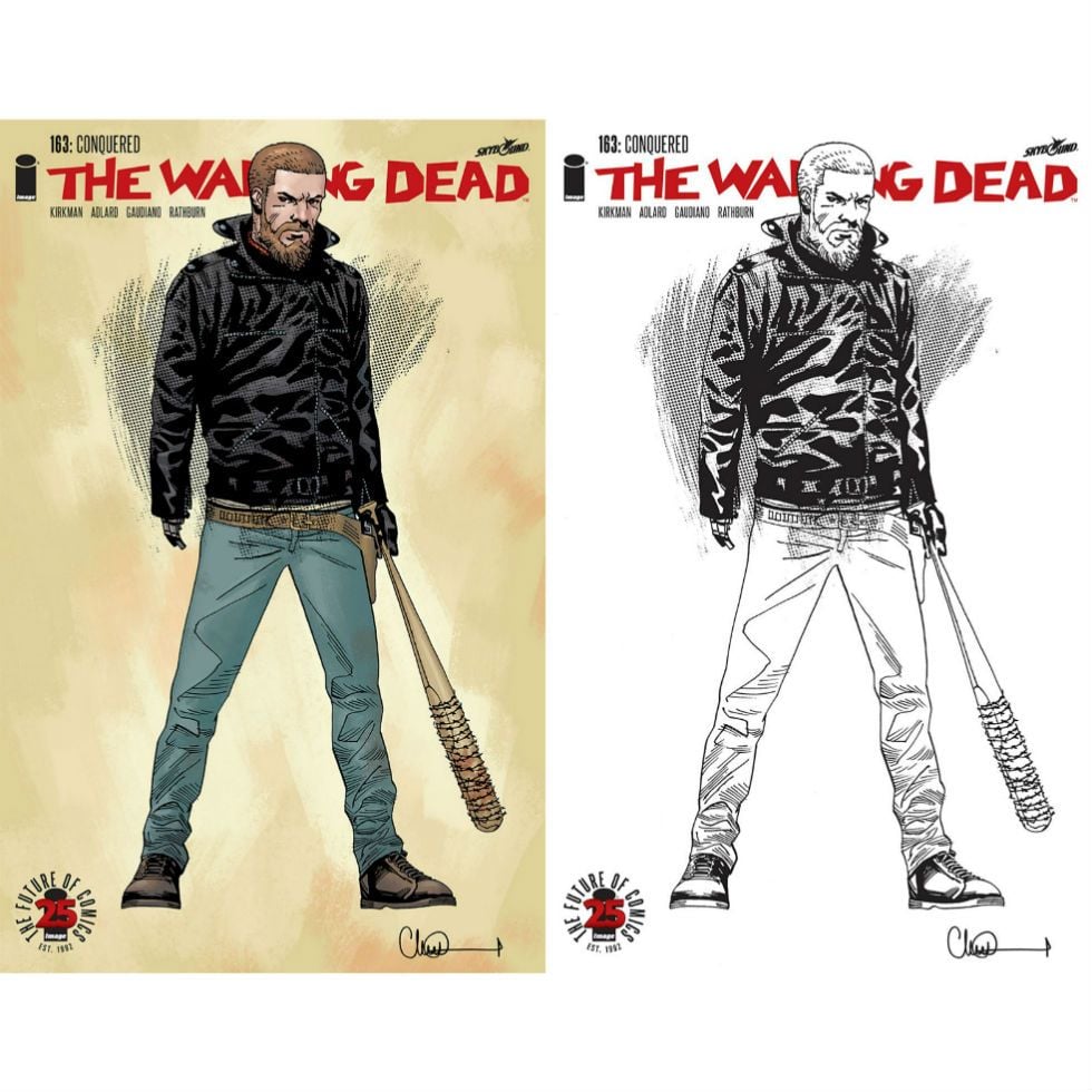 A edição 163 das HQs de TWD ganhou duas capas alternativas (uma colorida e outra em preto e branco) que trazem Rick vestindo a jaqueta de Negan e segurando Lucille.