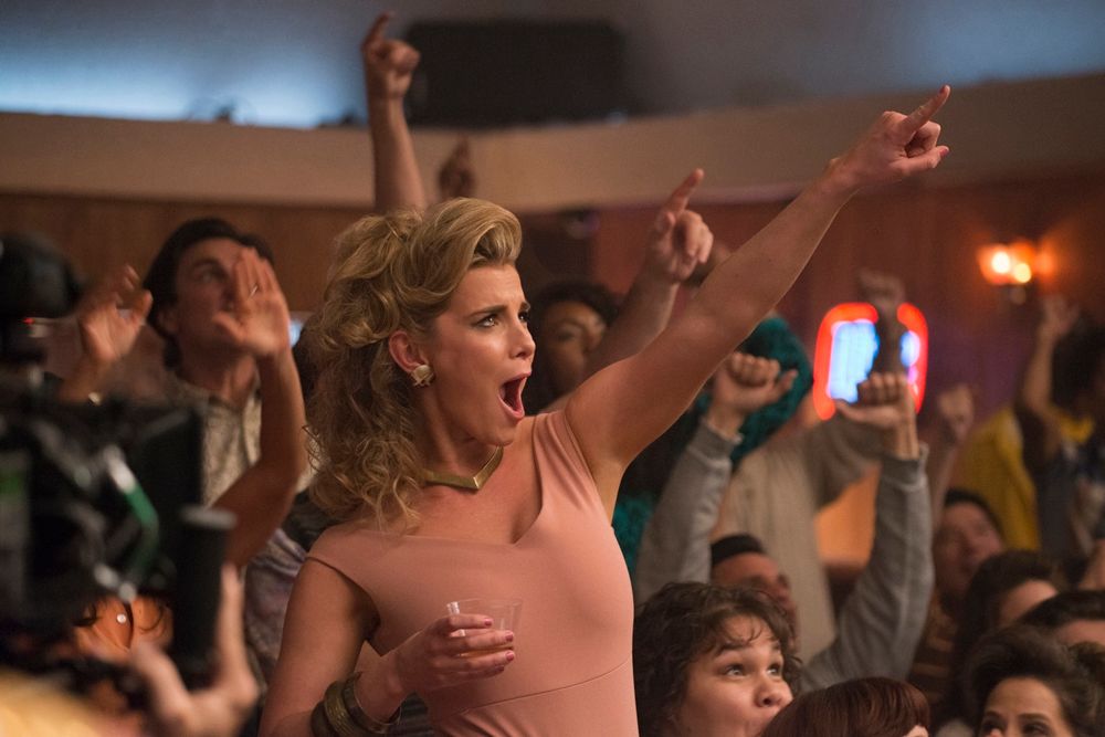 Mas para além das propositalmente péssimas coreografias das lutas e as atitudes no meio do caminho entre visionárias e retrógradas do diretor, Sam Sylvia (Marc Maron), GLOW tem um ar único porque usa e abusa da breguice dos anos ‘80, e faz disso sua própria armadura. Collants, muito brilho e o ar camp colocam a série em um lugar de prestígio porque não utiliza tais aspectos com ironia, mas respeita os seus significados. O mais bonito, no entanto, é a busca por identidade que circula toda a primeira temporada, que funciona mais como um grande episódio piloto, ou um material introdutório. O fato de a trama ser uma tentativa às cegas de fazer a ideia funcionar mostra uma força exemplar e inspiradora. Aos poucos, vai ficando mais evidente sob a superfície o que está realmente em jogo ali, e que aquelas mulheres tão diferentes entre si encontram ânimo uma na outra, e passam por cima de qualquer eventual desavença em prol de algo maior.