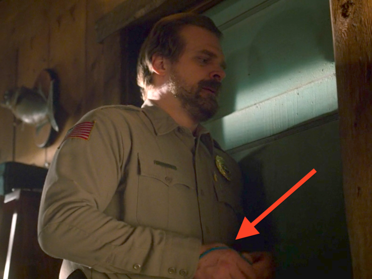 Depois, o acessório aparece no capítulo final da temporada quando Hopper lembra de sua filha ficando doente repentinamente. "Você verá no primeiro flashback com Sara que ela usa o cabelo preso em chiquinhas e está usando esse elástico azul", comentou Harbour ao Insider.
