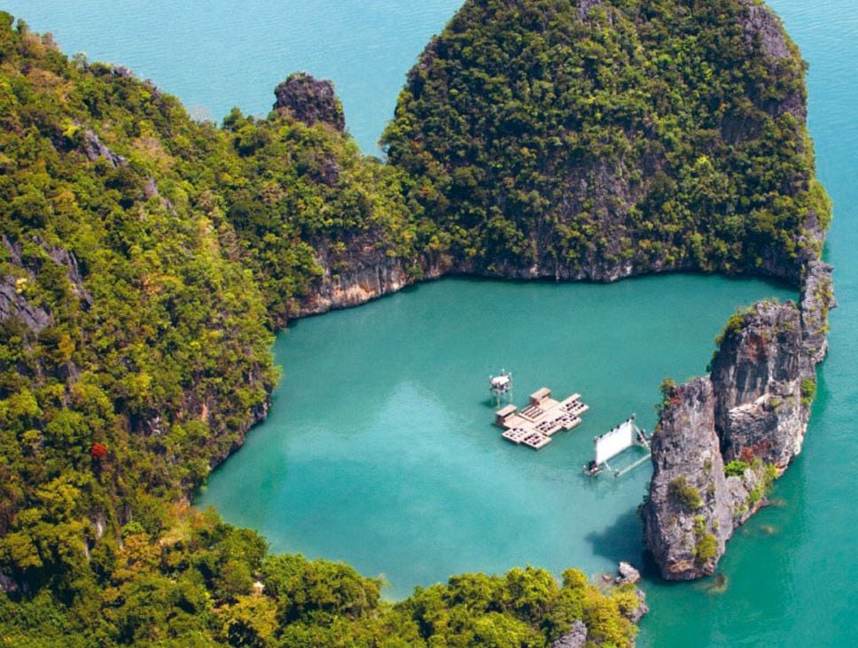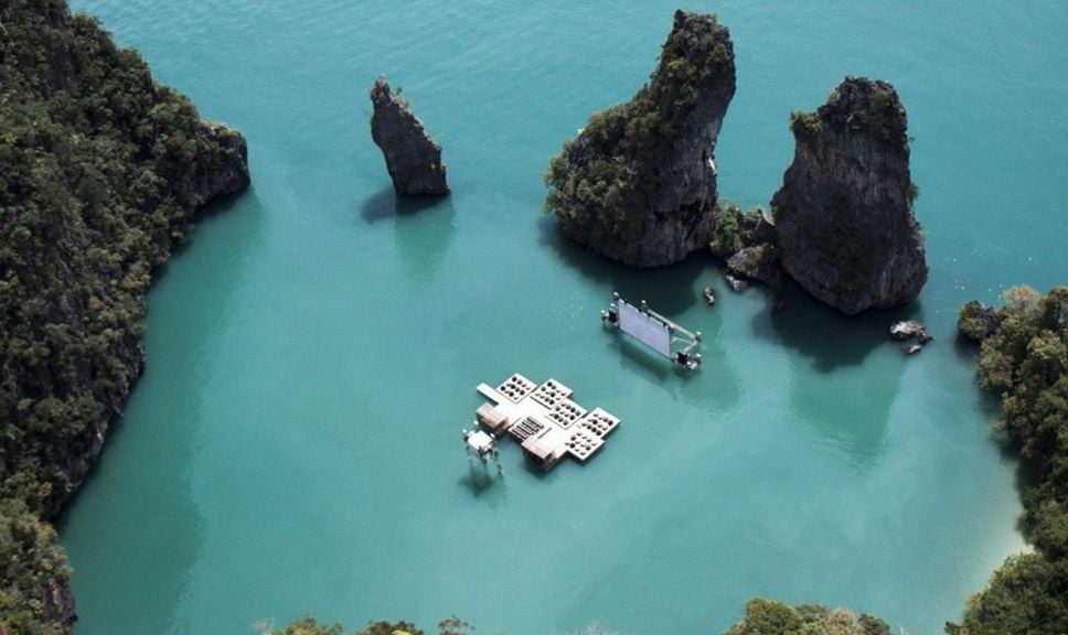 Mas você sabia que existem outros achados mundo afora? Na Tailândia, por exemplo, foi construído um cinema flutuante. Projetada pelo renomado arquiteto alemão Ole Scheeren, a estrutura batizada de Cinema Arquipélago foi feita para o festival Film on the Rocks Yao Noi em 2012, que teve curadoria da atriz inglesa Tilda Swinton.