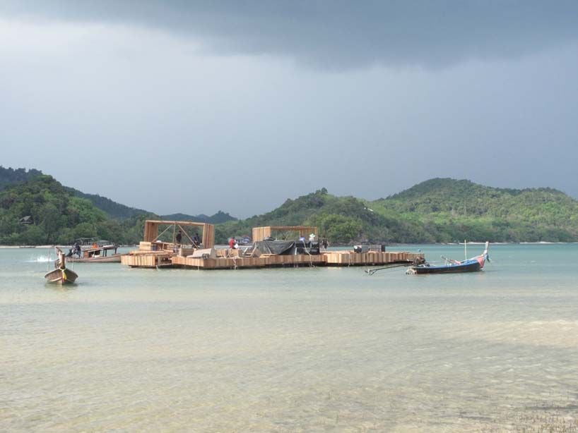 A instalação funcionou como uma grande jangada, flutuando nas águas esmeralda do lago Nai Pi Lae, na ilha Kudu. Pescadores locais foram chamados para erguê-la. Para chegar até a sala, os espectadores pegavam um barquinho e faziam um trajeto de cerca de dez minutos até o local. E não pense que ao chegar lá público sentaria em cadeirinhas! Grandes pufes, distribuídos em cinco nichos que ficavam em desnível, para facilitar a visão da tela, compunham a sala, enquanto um outro setor levava poltronas.