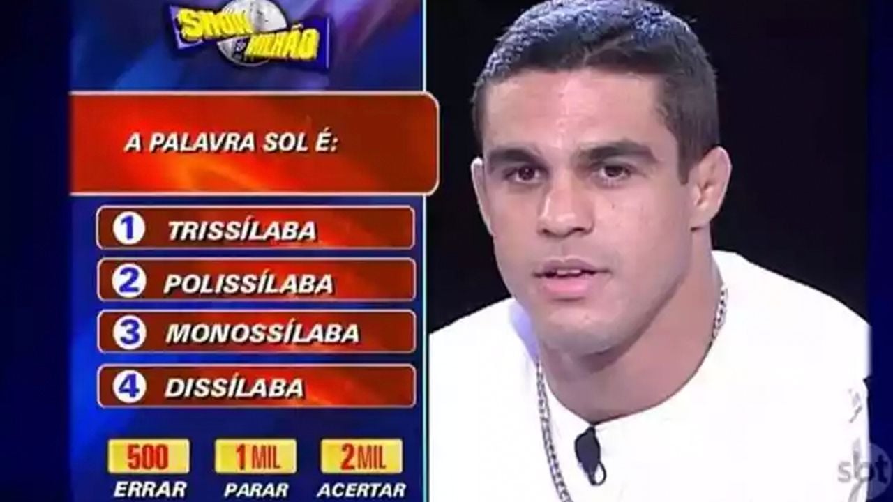 O lutador Vitor Belfort foi um dos famosos que participaram dos tempos áureos do Show do Milhão. Ele caiu logo nos segundo desafio, qao errar uma pergunta sobre a quantidade de sílabas da palavra "sol". O marido de Joana Prado ele escolheu a opção "Trissílaba", quando, na verdade, a palavra é monossilábica (ou seja, só tem uma sílaba).