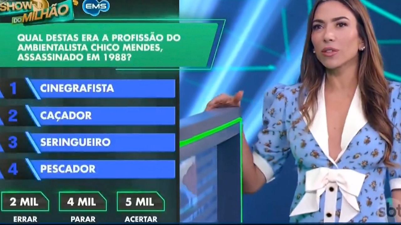 A participante, então, pediu ajuda aos universitários. O momento ficou cômico quando eles deram a resposta mais inesperada. A própria questão feita por Patrícia Abravanel já indicava uma pista sobre a profissão, mas responderam que Chico Mendes era cinegrafista!
